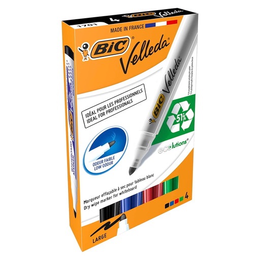 Marcador P/Pizarra Bic Velleda Blister X 4(Rojo,Azul,Negro Y Verde) Notas:* Las imágenes son referenciales.* Stock sujeto a disponibilidad.* Solici...