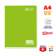 Cuaderno Inbox Kids Grapado A4 72Hj 60Gr Triple Kids Color /Entero Marco Rojo